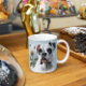 Um estilo com o Bela Cachorro Branco apresentado na caneca de café da natureza — uma mistura emocionante de beleza cênica e encanto canino para cada amante de cachorro.