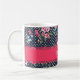 Lindos pontos monogrampolka de moda cinzenta, rosas padrão floral, antigas cores pastéis moles, pequeno padrão de bolinhas brancas, rosas cor-de-rosa, flores azuis, verdes, azuis, cor-de-rosa, branco, cinzas, cores moles, fundo azul marinho escuro, bordas cor-de-rosa vibrante néon quente e desbotadas. Bonito, amável, amor, romântico, sonhos, moda, chique, popular, sonhos, bonitinho, velho. Personalize seu nome inicial e as palavras favoritas ou exclua as palavras somente para imagem, impressão de imagem.