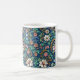 Flores bonitas, sotaques de ouro ricos e folhagem verde sobre fundo azul escuro criam uma caneca de café ao estilo Barroco que é perfeita para quem ama flores e impressões William Morris.