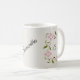 Esta bela e feminina design apresenta um quadro de flores em qualquer letra da sua escolha. As flores cor-de-rosa com caules verdes rodeiam o seu monograma inicial. Mude rapidamente a letra do monograma e o nome na caneca para criar um produto que é você.