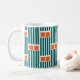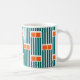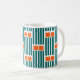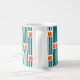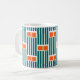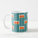 Esta caneca tem uma design moderna do século médio feita de cinco linhas lacrimogêneas e dois retângulos laranja repetidos na design.