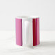 Listras verticais em tons variados de rosa, vermelho e roxo.
