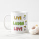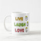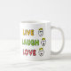 Live Laugh Love expression illustrated with the words plus faces - living, laughing and loving. A fun design to smile along with.