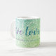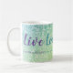 Live Love Laugh com brilho verde, azul e roxo e caneca motivacional de tipografia. Excelentes palavras para viver para ajudar a mantê-lo motivado e um bom lembrete enquanto bebe sua bebida quente matinal. Envie-me um e-mail se precisar de ajuda para personalizar ou ajudar a transferir para outro produto. designsbykatz@gmail.com