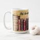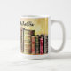 Uma obra de arte digital original composta de livros antigos seguidos, sobre um fundo de estilo antigo e rústico. A frase "Tudo que preciso são livros e chá" está na frente da caneca. Estas são canecas de 15 onças, do tamanho perfeito para o seu chá feito em casa! Ele faria um presente de excelente e você pode colocar pacotes de bolsas de chá - ou uma pequena planta para torná-lo especial para o seu ente querido.