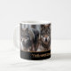 Esta caneca de café cerâmica é mostrada com uma impressão de foto de lobos selvagens no Parque Nacional de Yellowstone. Personalize este item ou comprar como está. Imagem licenciada
