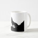 Silhueta negra e branca do lobo Solitário em pé em um morro