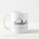 Esta caneca apresenta uma ilustração estilizada do horizonte único da cidade com seu nome embaixo.