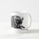 Um cão relaxado estica-se numa pose de foco suave que fixa o seu ritmo matinal. O olhar sombreado adiciona textura sem gritar. Ideal para cozinhas tranquilas, coletes de mesa, e talento pensativo.