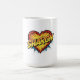 This comic-style graphic mug features the name "Sharon" over a beautifully designed energetic heart design. This is a great gift for your friend, girlfriend, wife, and sister.