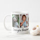 Give Grandma a gift she'll cherish forever with our Love You Grandma Grandkids 5 Photo Collage Coffee Mug. This unique mug is personalized with 5 photos of her grandkids and includes a heartwarming "love you Grandma" typography. Add a personal touch by including the names of the grandkids, making it a truly special and sentimental present.