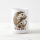 Um design único com meia lua e uma libélula feita em tons de terra, branco um sutil fundo de confete de ouro. Há o texto "Alma Selvagem". Tem um "boho" para isso.