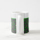 This fun monogrammed shamrock mug is great for Saint Patrick's Day, an Irish friend, or for anyone who likes shamrock themes. It includes three shamrocks with varying prints, including a primarily green print, a black print, and a "big cat" leopard animal pint, in a circle of white. The background is a pattern of green shamrocks against black, with green trim. Your monogram name appears at top in a vintage typeface against white so make sure to type the name you want. The design is on both sides of the mug.
