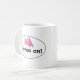 Esta caneca de café caracteriza um design do encaixotamento. Meu primeiro cardio--kickboxing uso impressionante do instrutor dizer sempre "luvas em" quando era hora de começar retroceder & perfurar nossa maneira de melhorar a saúde! Este design tem um grupo de luvas de encaixotamento do rosa pastel e o texto diz "luvas em", dentro de uma beira oval. Há muitos outros estilos e cores da caneca de café a escolher de.
