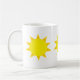 Três sóis amarelos em uma caneca de café assim que em você podem aumentar e brilhar.