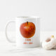 Maçã vermelha sobre fundo transparente. A maçã tem muitos símbolos, mas guardemos os símbolos do amor, da vida e da saúde. Caneca de café. Você pode mudar ou apagar a imagem e dois textos modelo diferentes eu bebo suco de maçã e para dizer a verdade isto é sidra de maçã.
