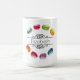 Uma caneca com uma design de aquarela rico de macarões franceses doces e deliciosos em formação circular. No centro está uma moldura decorativa que diz o seu nome. O texto pode ser personalizado com seu nome, nome comercial ou o que você quiser. Os macarões são pintados em muitas cores bonitas como rosa, azul, verde limão, amarelo ensolarado, vermelho, roxo etc..