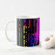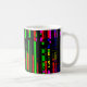 Vertical stripes in neon colors of green, pink, purple, and more make a mod coffee mug that you will love! Fun, colorful, and vibrant!