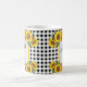 Uma linda caneca personalizada para a Mãe da Noiva com um clássico padrão xadrez preto e girassóis. Esta caneca é um ótimo presente para a Mãe da Noiva no seu chá de noiva ou despedida de solteira. Um lado da caneca diz Mãe da Noiva. O outro lado fornece um modelo de texto onde você pode inserir o nome da Mamãe. Confira nossa Coleção Xadrez Preto e Girassóis para mais ideias de chá de noiva e recepção no mesmo tema!