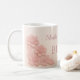 Elegante caneca de café rosa pastel com detalhes florais suaves e a frase “Mãe da Noiva”. Um presente perfeito de lembrança de casamento para a mãe da noiva, ideal para chás de noiva, festas de noivado e manhãs de casamento. Design feminino, delicado e atemporal que se adequa a todas as celebrações especiais.