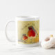 A caneca é de excelente qualidade, de bom peso e aparenta resistentência. O tamanho grande da caneca de 444 ml é muito prático, ela serve até para sobremesas. A alça é do tamanho certo para empunhadura, e oferece grande firmeza. A impressão ficou perfeita, a imagem ficou completamente nítida, e as cores vivas como na imagem do site.