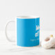 Engraçado caneca moderna para Dia de as mães ou qualquer dia para honrar mães especiais! Fundo azul brilhante com texto branco que diz "Mãe dos adolescentes. Pode haver vinho aqui.