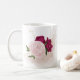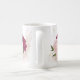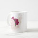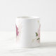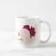 Linda caneca de café com flores magenta e rosa e folhas verdes