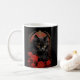 Black Maine Coon cat com flores vermelhas estilo art nouveau