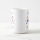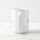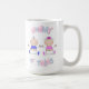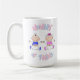 Uma caneca de café branca com "Mamães de Gêmeos" em um menino e menina azul e fofo, de roupas azuis e cor-de-rosa.