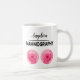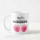 This black typography coffee mug pairs a name, MAMMOGRAPHY, with an abstract two-circle design that represents breast anatomy. Personalized for a mammo technologist, it works well as a thank you or appreciation gift from coworkers, friends, or family.