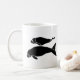 Silhuettes de peixe-boi em fundo azul-oceânico.