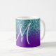 Crie o seu próprio gradiente violeta roxo e a sua xícara de café brilhante com um design de texto elegante moderno monograma. Personalize a elegante caligrafia da turquesa e do monograma branco personalizado. Você pode alterar as cores, estilos e tamanhos da fonte. O brilho falso é criado de uma foto de um livro... os impressões design para o presente como uma foto sem brilho ou brilho. Quando você transfere este design para alguns dos outros itens de presentes, você pode ajustado ou preencher o gráfico sem falhas do azulejo para a área impressão.