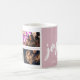 Script Joyful Blush Cor De Foto Rosa 4 Colagem Keepape Coffee Mug. Escrito alegre em um roteiro branco. Adicione suas 4 fotos e personalize o texto na caneca ou apague-o. Férias de Natal excelente mantêm-se para a sua família e amigos.