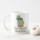 O design da Potência Maneira Calma Divertida mostra um potente ao volante criando um pote de argila com as palavras "Manter Calmo e Fazer Potes" embaixo.
