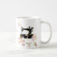 Um design de Na moda, com tecido de cor pálida bonito, botões, bobinas de rosca e flores. Uma caneca de café ideal para todos que adoram costurar e colar. Um presente ideal para dar ao seu círculo de colagem ou costura. Pode ser personalizado alterando o nome.