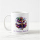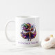 This ceramic coffee mug is shown with Mardi Gras images, Text of "Let the good times roll' is beneath the prints.