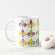 Esta caneca tem um design de Mardi Gras de fleur de lis revestido através do design com diferentes designs.
