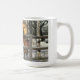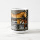 Esta caneca apresenta uma obra de arte original de uma égua de pele de balde e seu poço de baía esperando por uma cerca em uma paisagem de inverno de neve, criada no DAZ 3D pela artista Jayne Wilson. Amantes de cavalos apreciarão esta caneca.