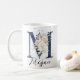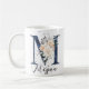 Caneca De Café Marinho Azul - Letra M Peach Cream - Monograma Flo