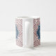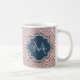 Uma elegante caneca de padrão de escala arquitetada deco-vermelha escura com um marinho crachá azul quatrefoil que você pode personalizar adicionando facilmente seu próprio monograma e nome. Esta é parte da Coleção de Primavera do Sailor Blue Monogramas de Maçã Espicada.