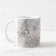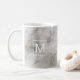 Cinza moderna e moderna marble, caneca de café com um monograma branco ousado em ambos os lados.
