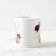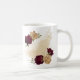 Belíssima caneca de café com flores marrom e dourado bege com folhas verdes .