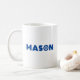 O nome Mason com a letra O como uma roda. Para um carro/bicicleta fanático, mecânico ou condutor.