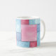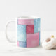 Uma bonito caneca de café branca com uma manta de retalhos de padrão de denim rosa e azul, de um design de aquarela pintada à mão por Judy Adamson.