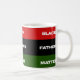 Aproveite a sua bebida deste drinque com as palavras "Black Fathers Matter" sobre a bandeira da Pan African Flag