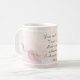 Uma caneca de café com escritura inspiradora mostra uma bela floral vintage em tons de rosa. Ele apresenta a Bíblia Verse Matthew 11:28, Jesus disse, "Venha a mim todos que estão cansados e sobrecarregados, eu te darei descanso."_