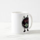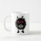 Geek com uma ilustração divertida de um inseto mau que está preparado para voltar para a escola. Ela tem um sorriso e óculos. Segurando seu livro, ela está esperando por aulas para começar, ansiosa para ler. Esta caneca relacionada à leitura é excelente para uma geek.