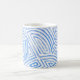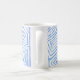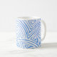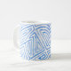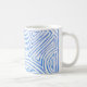 Um padrão azul e branco fresco, abstrato, tipo labirinto faz disso uma caneca na moda, projetada por Judy Adamson. Também disponível em turquesa, branco, verde e branco, a pedido.