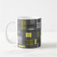 Um design de arte retró abstrato nos anos 50 com linhas de grade e retângulos.