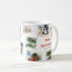 Personalize sua alegria natalícia com esta caneca festiva de Natal! Apresentando a icônica saudação natalícia havaiana de "Mele Kalikimaka" em ousada caligrafia vermelha, e rodeada por ilustrações tropicais lúdicas de selos - pense Papais noeis surfando, flamingos e pinguins soltando na praia sob palmeiras. Torne-o ainda mais especial personalizando-o com um nome. Espalhe a alegria da temporada com esta caneca e adicione algumas vibrações tropicais às suas comemorações!